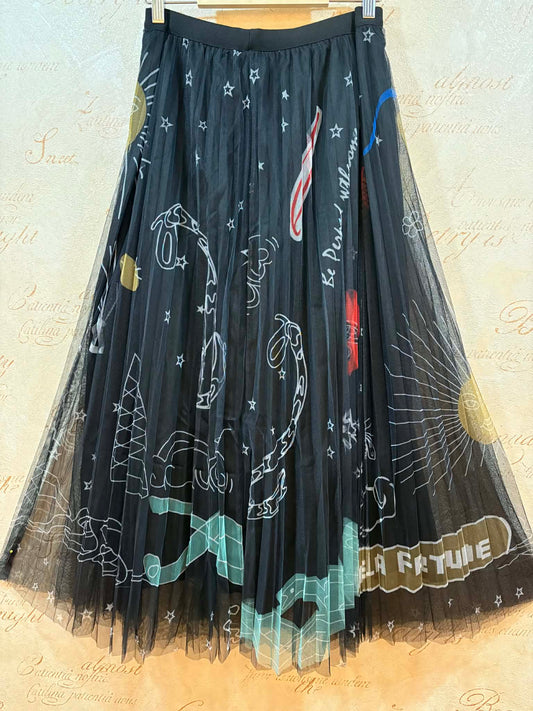 THE 'SOLSTICE' LAYERED ELASTICATED WAIST TULLE SKIRT WITH STUNNING CELESTIAL STYLE PRINTS