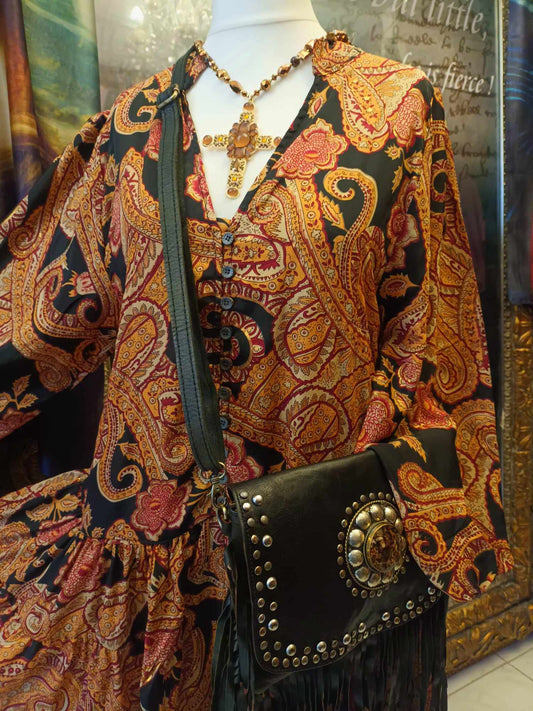 'PRIYA' BEAUTIFUL GOLD AND BLACK RICHLY EMBELLISHED BOHEMIAN DRESS WITH ADJUSTABLE DRAWSTRING WAIST