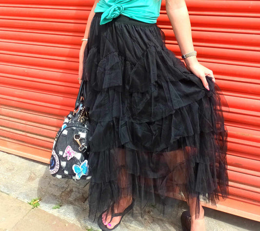 'TALULLAH' FABULOUS BLACK TULLE SOFT AND SWISHY TIERED SKIRT