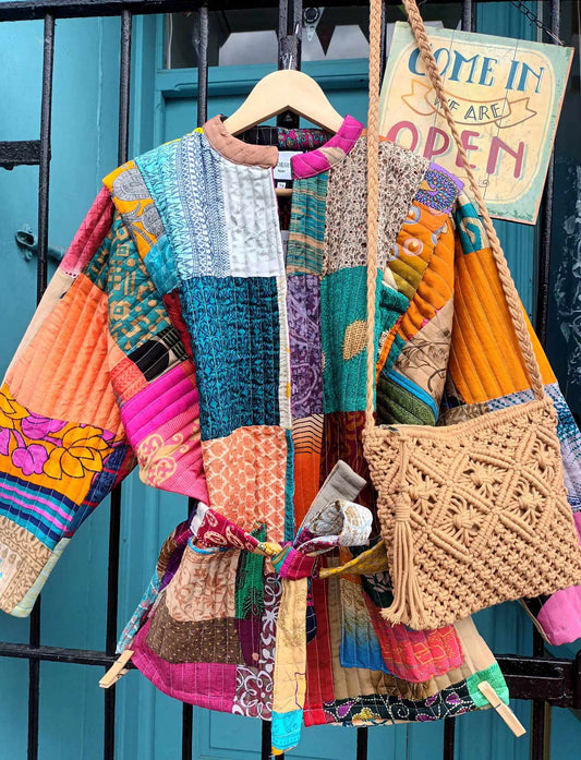 THE 'SASKIA' STUNNING PARISIAN DESIGNER 70'S STYLE QUILTED PATCHWORK KIMONO JACKET