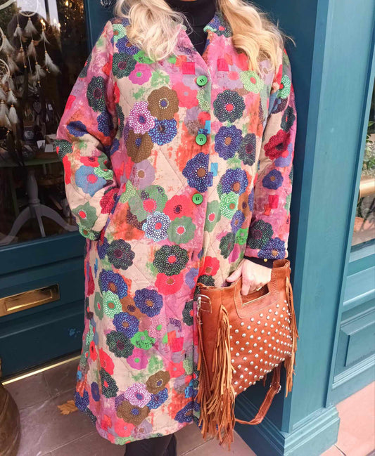 THE 'BRIGHTER DAYS' BEAUTIFUL RAINBOW FLORALS QUILTED COAT WITH FLEECE LINING