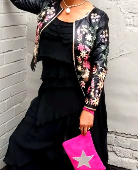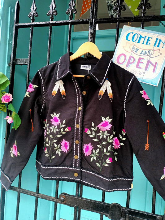 THE 'DAKOTA' RICHLY EMBROIDERED JACKET WITH BREATH TAKING DETAIL TO THE BACK (BLACK, IVORY OR BLUE)