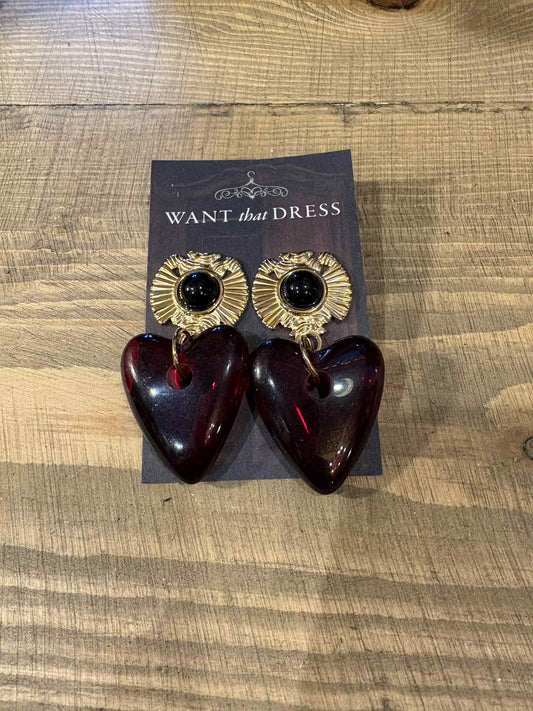 THE 'JULIET' STUNNING RUBY RED HEART BAROQUE STYLE EARRINGS