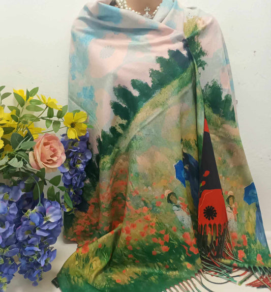 THE 'POPPY MONET' BREATHTAKING LUXE FEEL FRINGED PASHMINA WITH REVERSABLE PRINTS