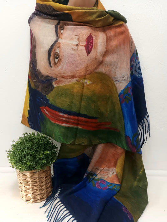 'FRIDA'S PRETTY PORTRAIT' 100% LUXURIOUS SILK LARGE WRAP STYLE SCARF
