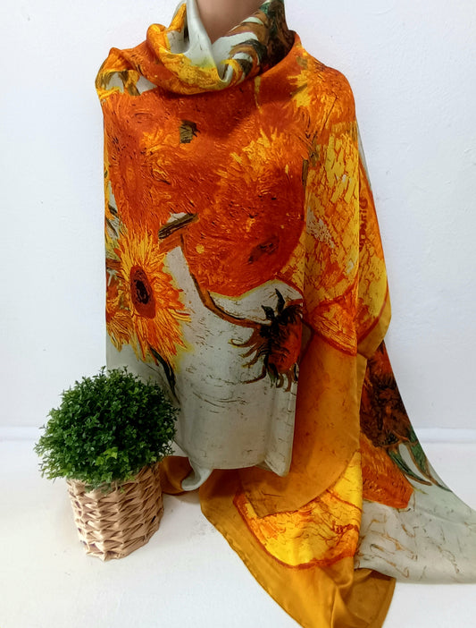 'SUNFLOWERS IN SILK' 100% LUXURIOUS SILK VAN GOGH PRINT LARGE WRAP SCARF