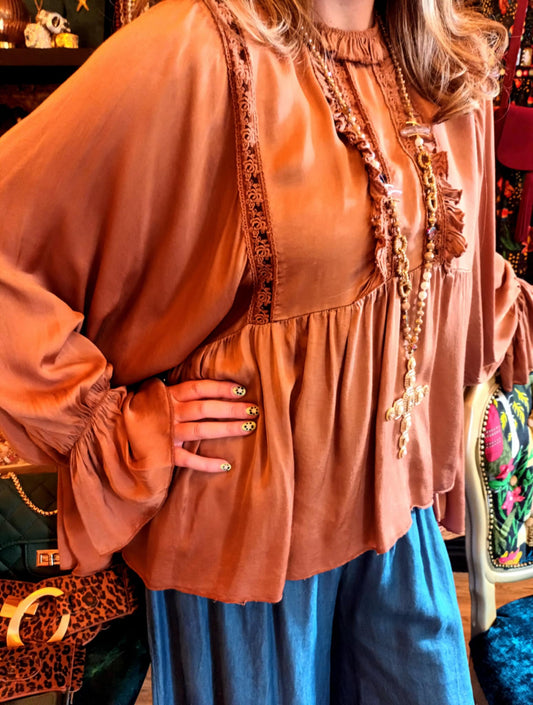 THE 'ANNIE' STUNNING VINTAGE STYLE BATWING TOP WITH FRILL AND LACE DETAIL FIVE COLOUR CHOICES