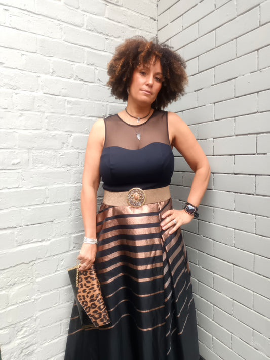 COAST SIZE 14 SWEETHEART BODICE COPPER STRIPE ORGANZA SKIRTED DRESS
