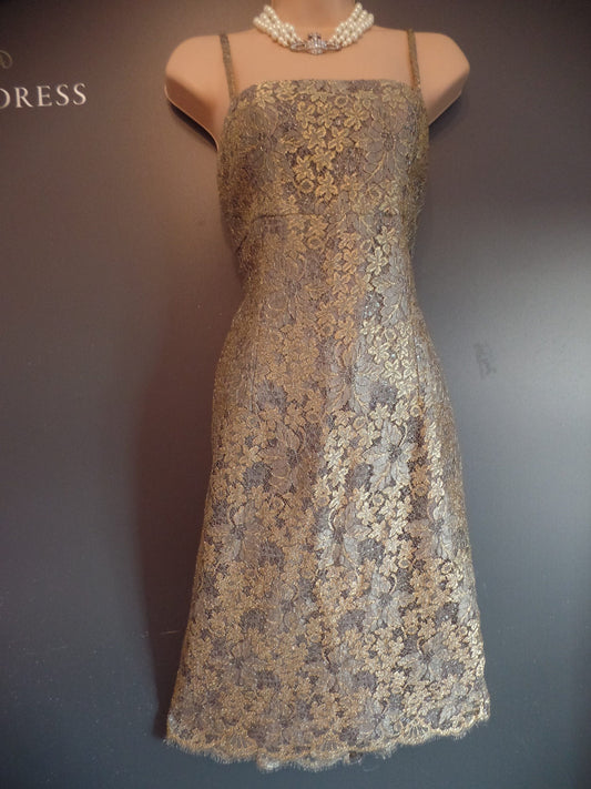 Monsoon Size 14 Shimmery Gold Lace Classic Sheath/Shift Dress