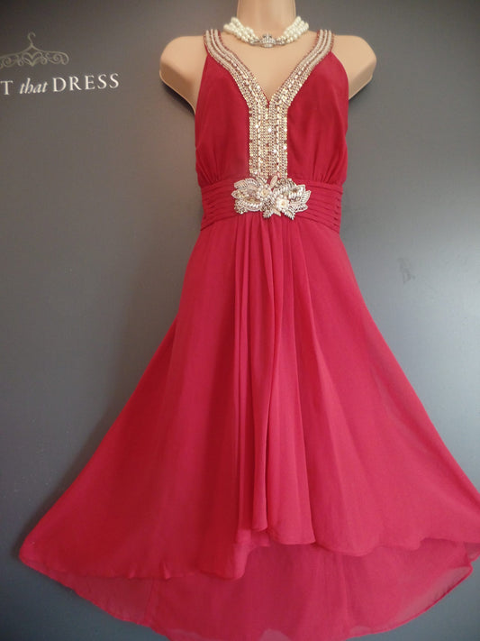 Monsoon Size 12 Beautiful Berry Chiffon Richly Beaded Sumptuous Swishy Hem Dress RRP £160!