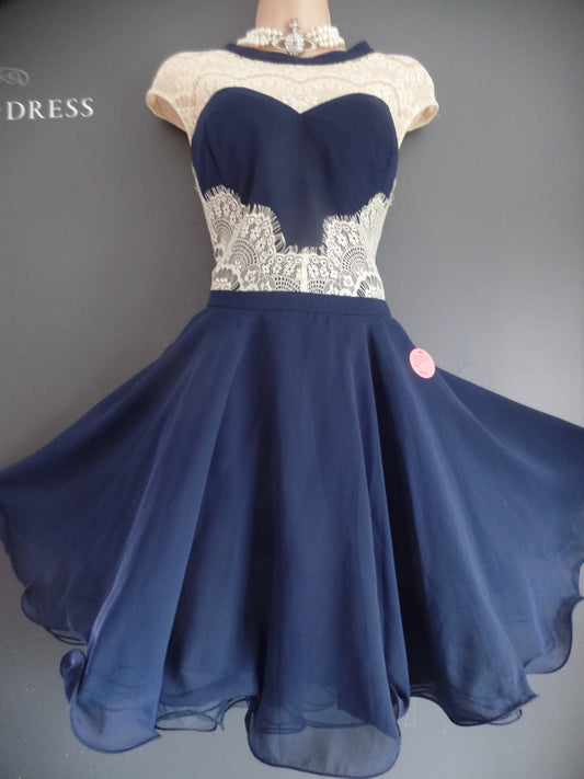 Chi Chi London Size 16 Stunning Midnight & Cream Lace Frothy Babydoll Dress