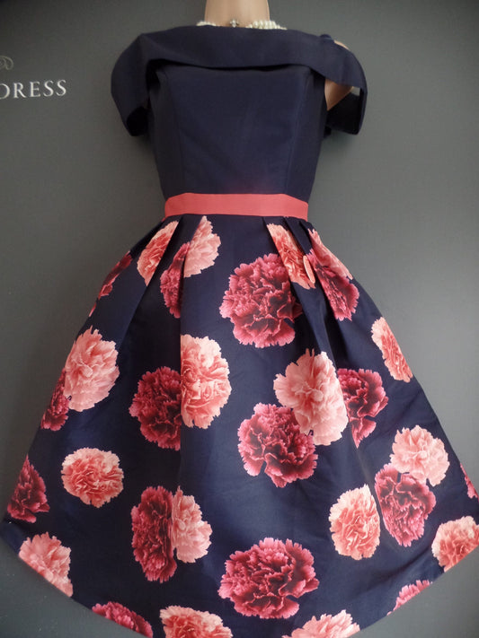 Chi Chi London Size 10 Stunning 50's Style Peony Print Bardot Neck Dress