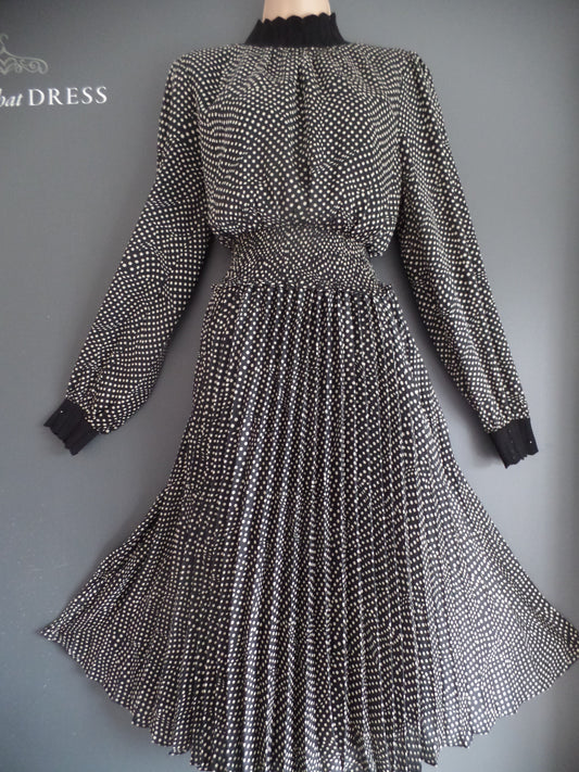Karen Millen Size 14 Ditsy Dotty Print Crochet Neck Flippy Sheered Waist Tea Dress