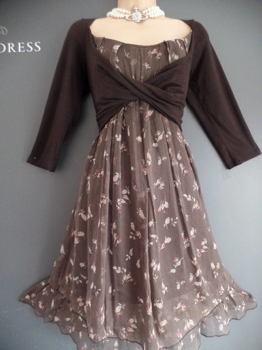 Phase Eight Size L Ditsy Floral Luxurious Silk Chiffon Jersey Shrug Dress RRP £95!