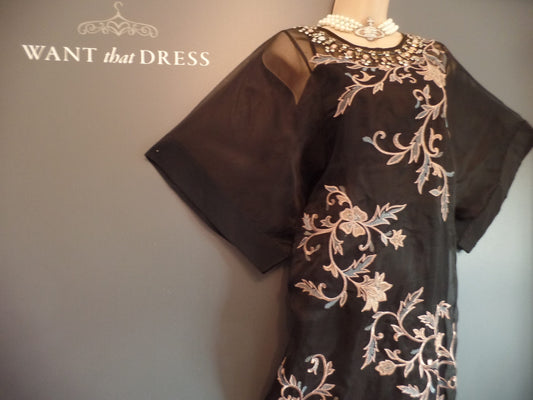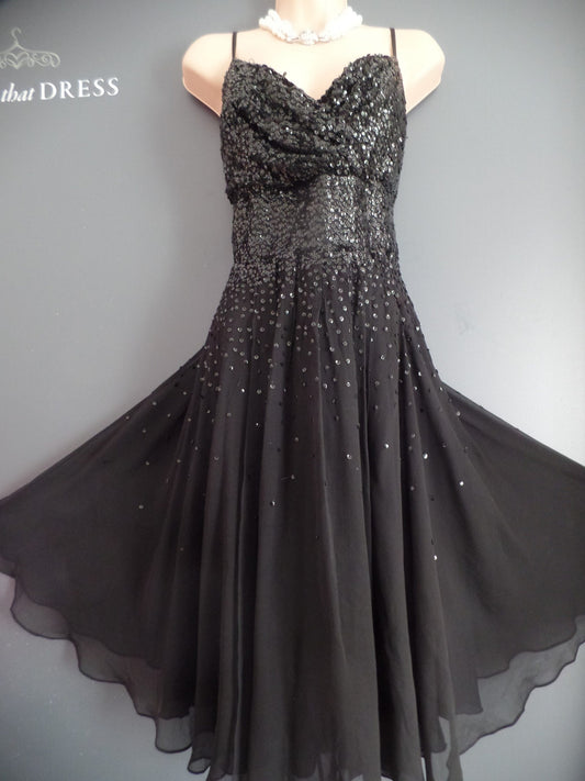 Monsoon Size 18 Luxurious Black Silk Delicately Sequinned 50's Style Dress RRP £140!