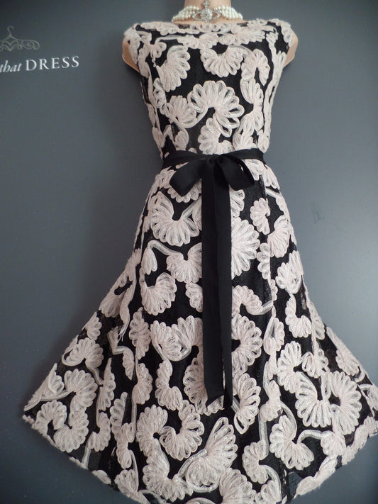 Phase Eight Size 16 Glorious Nude & Black Tapework Tulle Hem 50's Style Dress RRP £150!