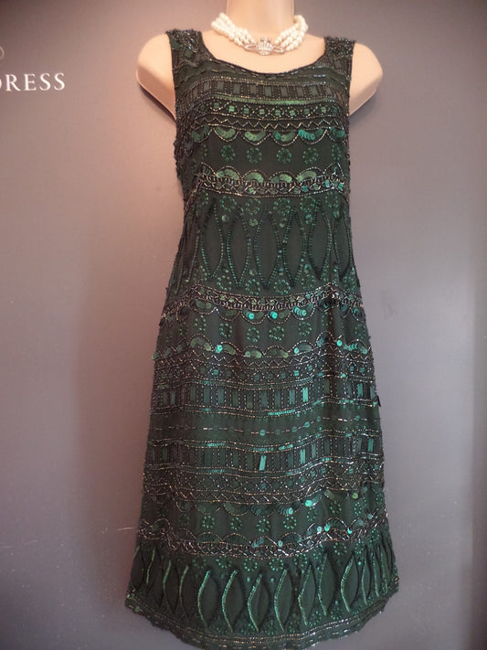 Phase Eight Size 10 Stunning Holly Green Richly Beaded Vintage 20's Style Dress RRP £160!