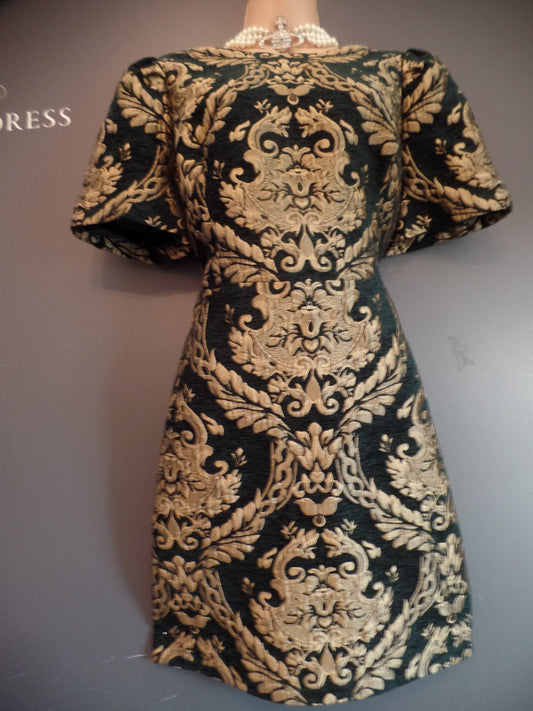 Monsoon Size 16 Sumptuous Holly Green & Gold Brocade Dress