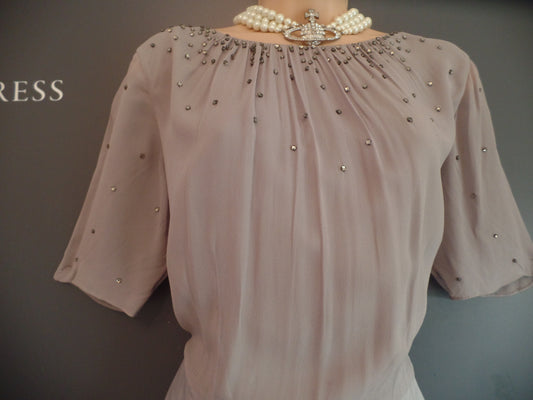 Boden Size 14 Ice Grey Delicately Sequinned Chiffon Bodice Occasion Dress