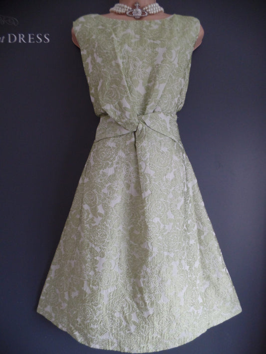 Phase Eight Size 18 Chic Apple Green Brocade Bow Front Dress