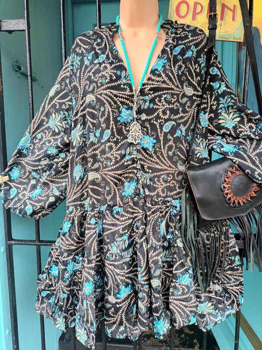 THE 'NATALIA' RICHLY BEADED FLIPPY BOHEMIAN DRESS IN BLACK/GOLD OR CREAM/GOLD FROM OUR SPANISH COLLECTION