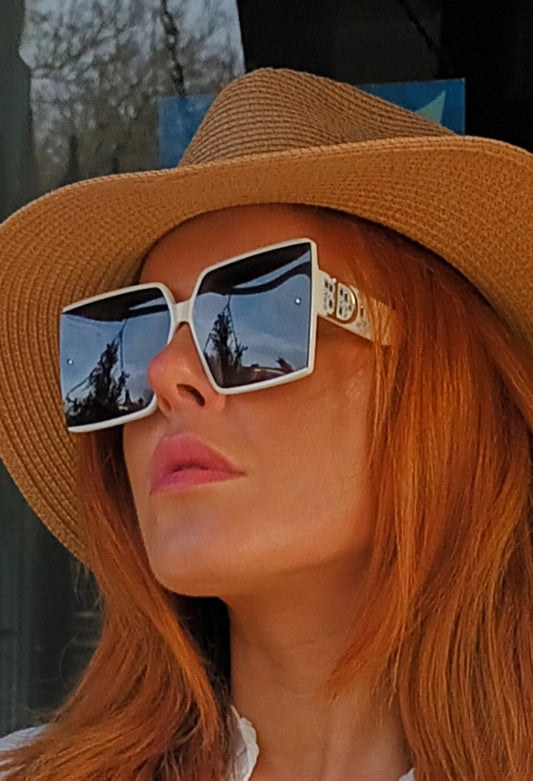 'ST TROPEZ' DESIGNER INSPIRED SUNGLASSES WITH ORNATE 'D' DETAIL IVORY