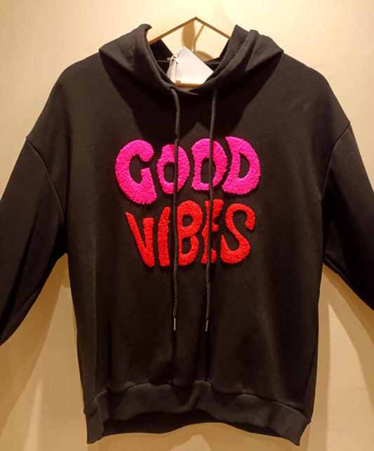 THE 'GOOD VIBES' COSY HOODIE IN BLACK WITH HOT PINK AND RED DETAIL