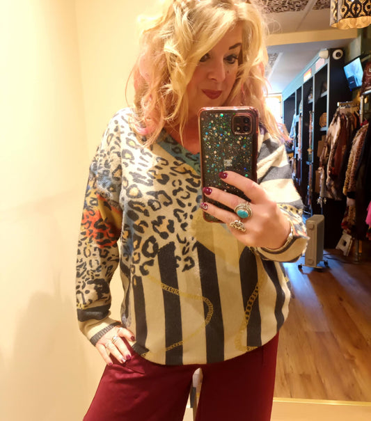 THE 'ARTY LEOPARD' BEAUTIFUL LUXURIOUS SOFT FEEL HOTCHPOTCH PRINT COSY KNIT