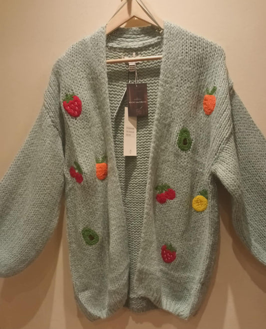 THE 'FEELING FRUITY' FABULOUSLY COSY EMBROIDERED SNUGGLE CARDIGAN IN SAGE GREEN OR POWDER BLUE