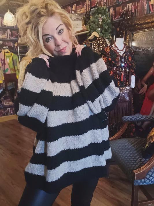THE 'COBAIN' COSY OVERSIZED STRIPED FUNNEL NECK SNUGGLE JUMPER PINK OR BLACK