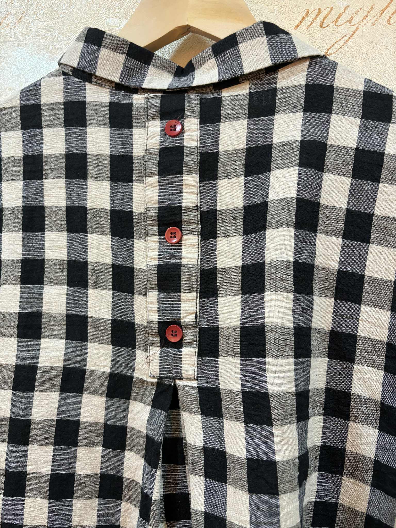 Coming in an exquisite black and white gingham check, our beautiful 'GILLY' shirt/jacket buttons to the front with contrasting red buttons and features adorable button detail to the back. With pretty patch pockets to the front this flattering boxy style shirt can also be worn open as a jacket. Wear with classic jeans for a timeless vintage inspired look, or pair with our matching GILLY trousers, kitten heels and a flash of scarlet lipstick for a divine dressy look!