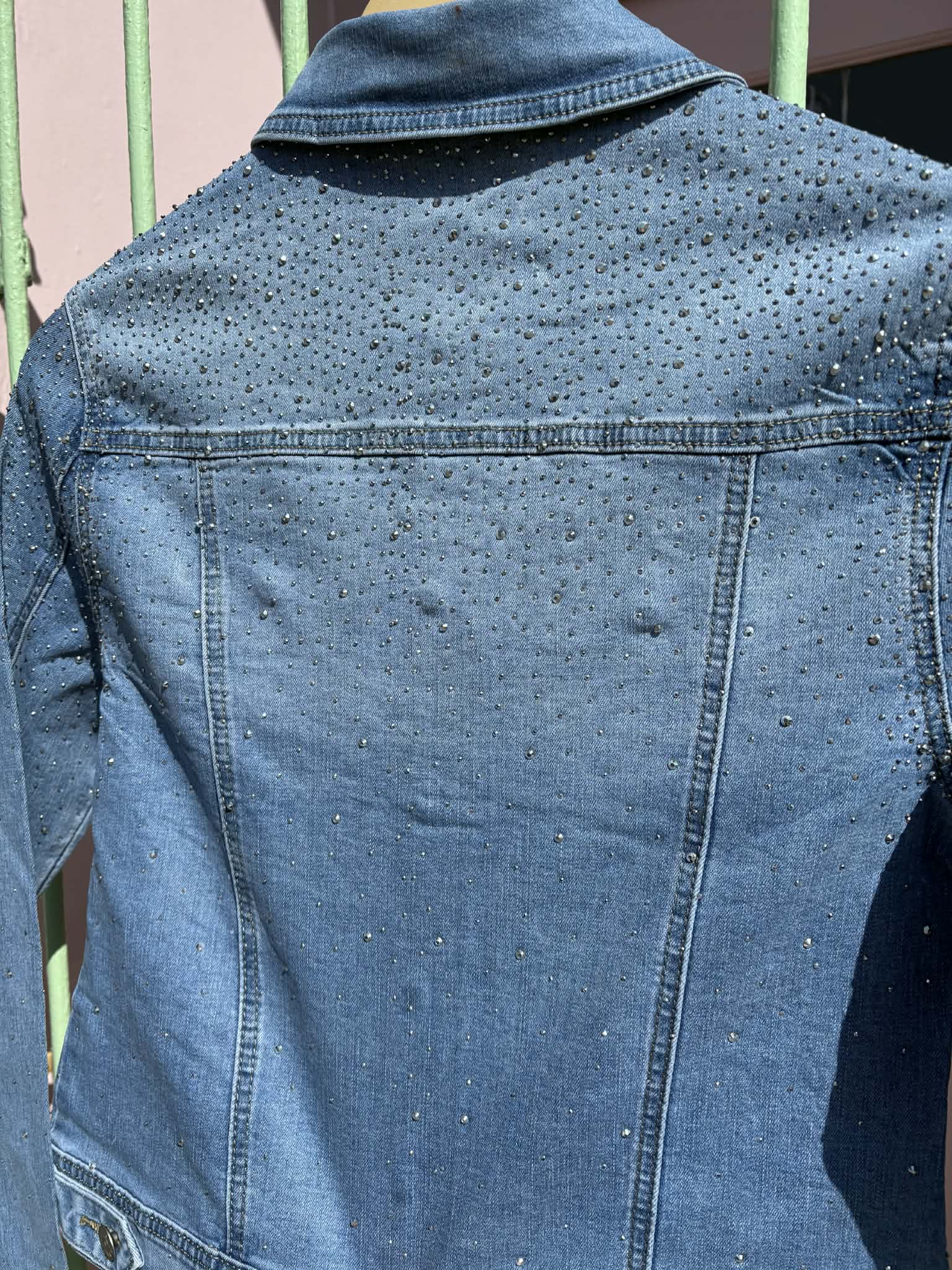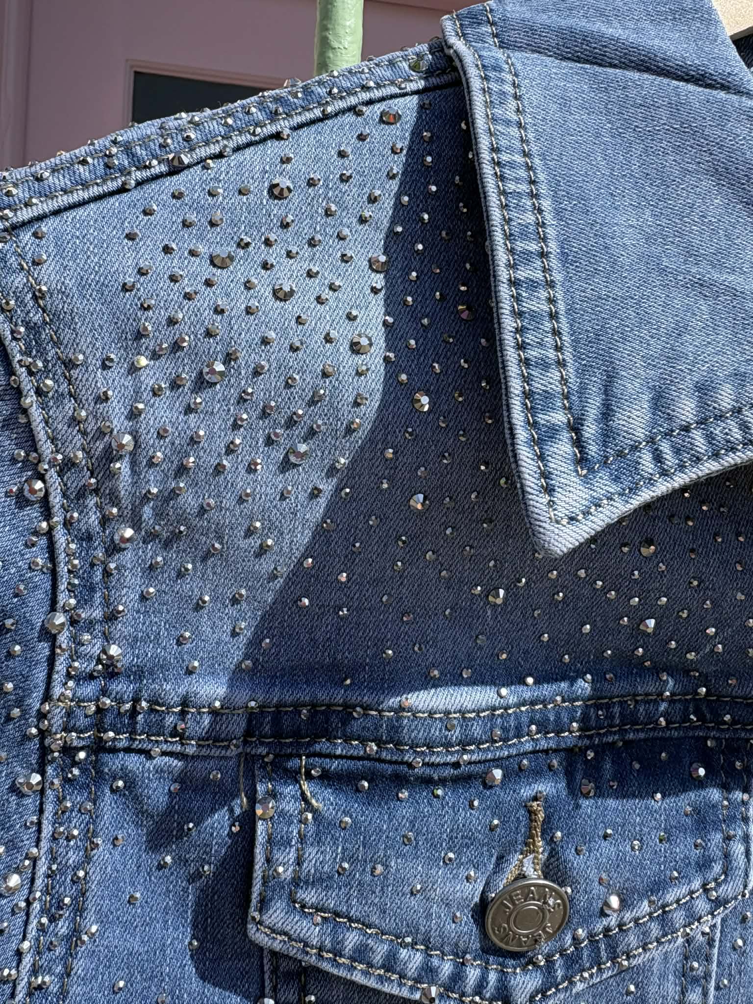 THE 'MILEY' STUNNING RHINESTONE EMBELLISHED CLASSIC FADED DENIM JACKET