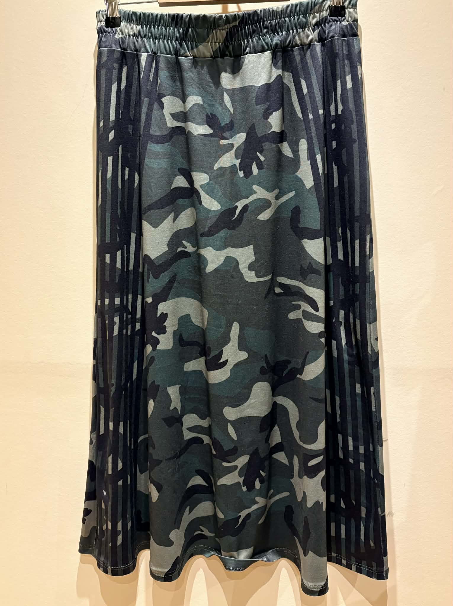 THE 'SPORTY CAMO' URBAN STYLE CAMO PRINT SKIRT WITH SIDE STRIPES AND STRETCH WAIST