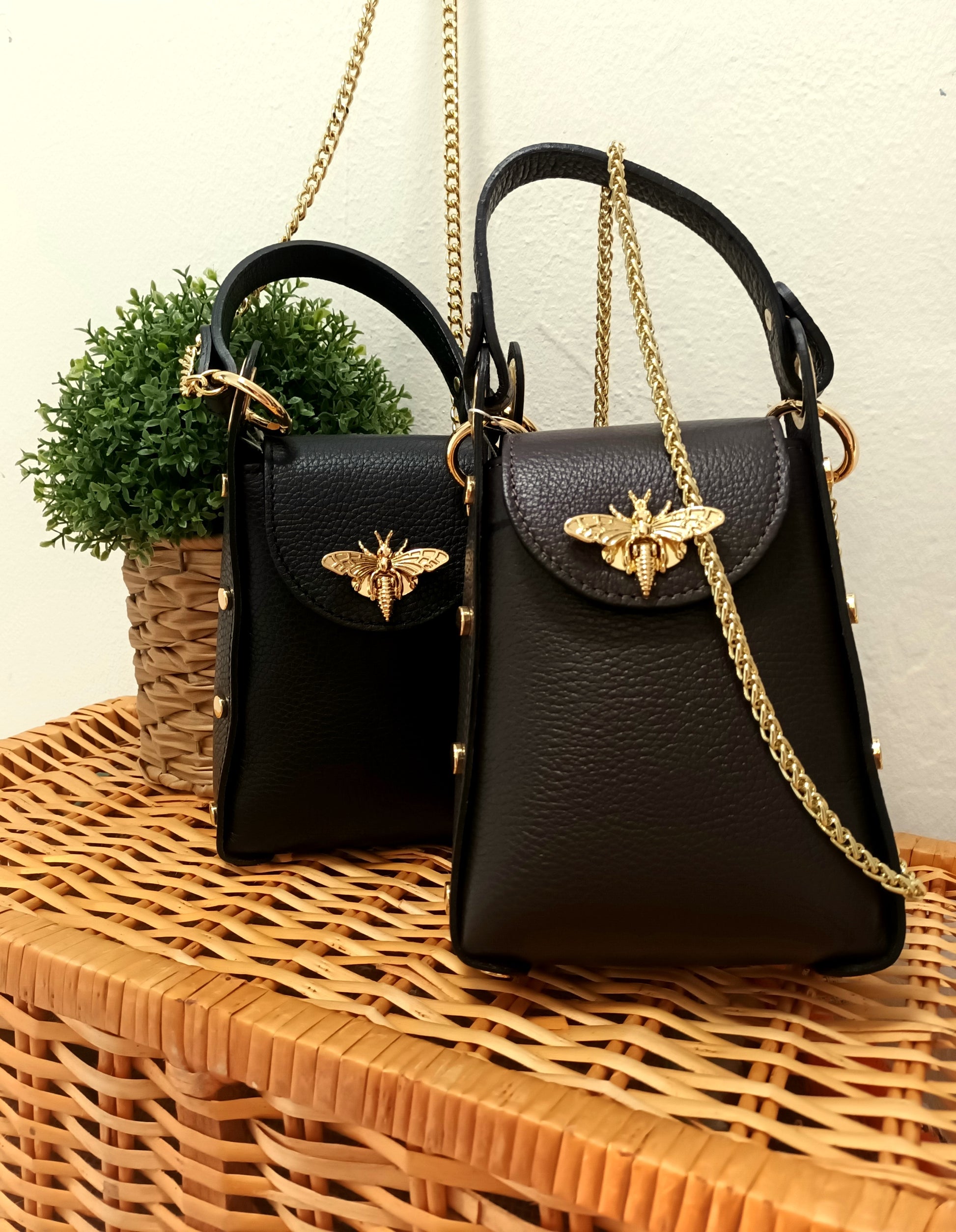 Coming in 100% genuine leather, this adorable little bag has just enough space to hold your phone, credit cards, lipstick and sunglasses!