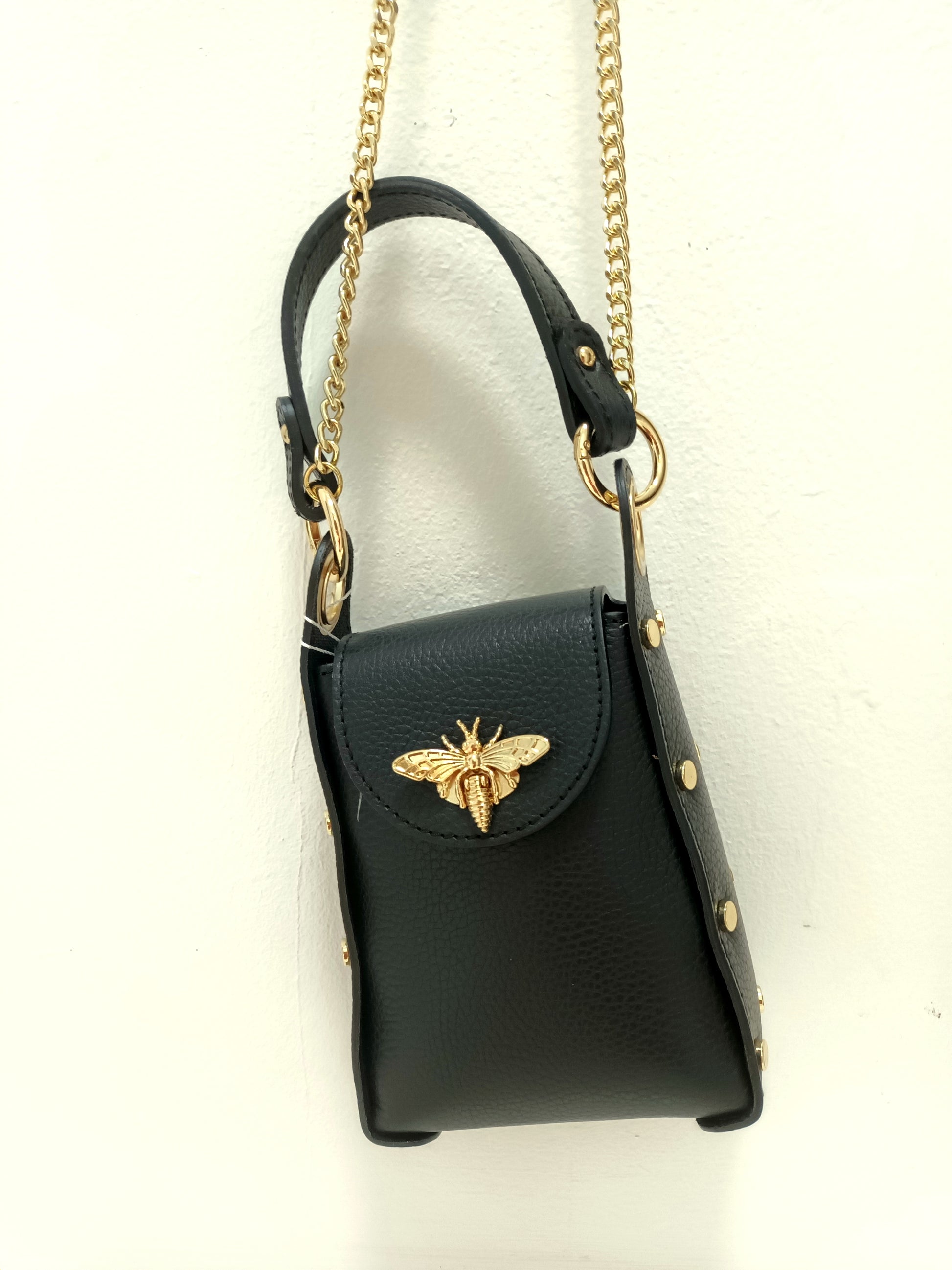 'BEE HAPPY' CUTE LEATHER STUDDED BEE CLASP BAG