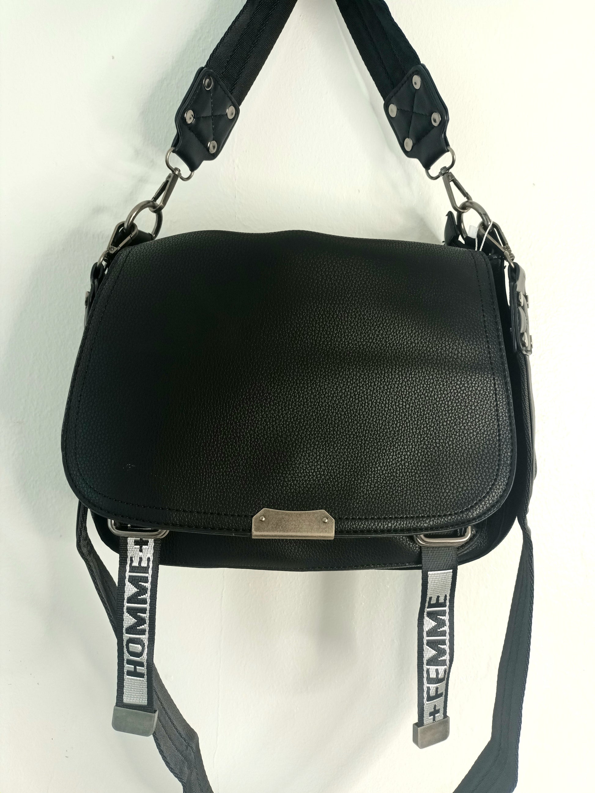 Chic, versatile and with a classic utility feel, this vegan messenger bag has loads of inner pocket space and can be held as a handbag or worn across the body. With stylish statement straps this useful bag has got you covered!