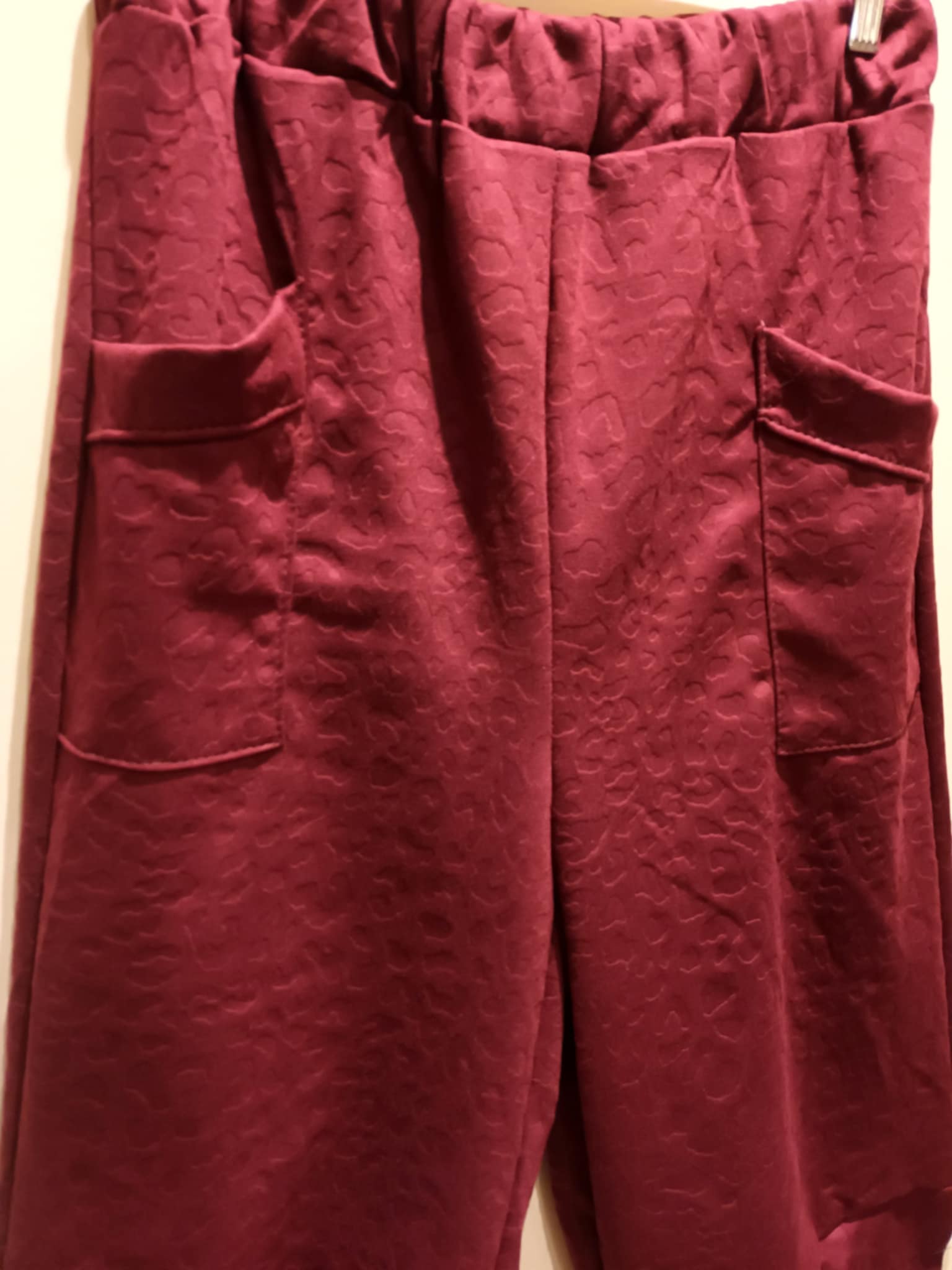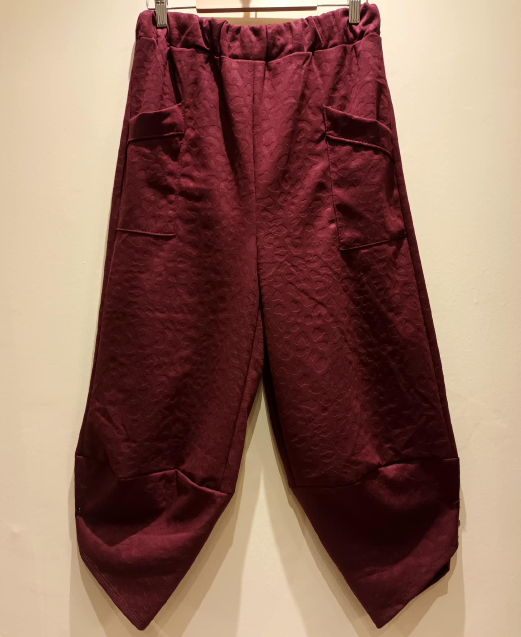 THE 'CARNABY LEOPARD' COCOON STYLE PANTS WITH OVERSIZED POCKETS IN BURGUNDY