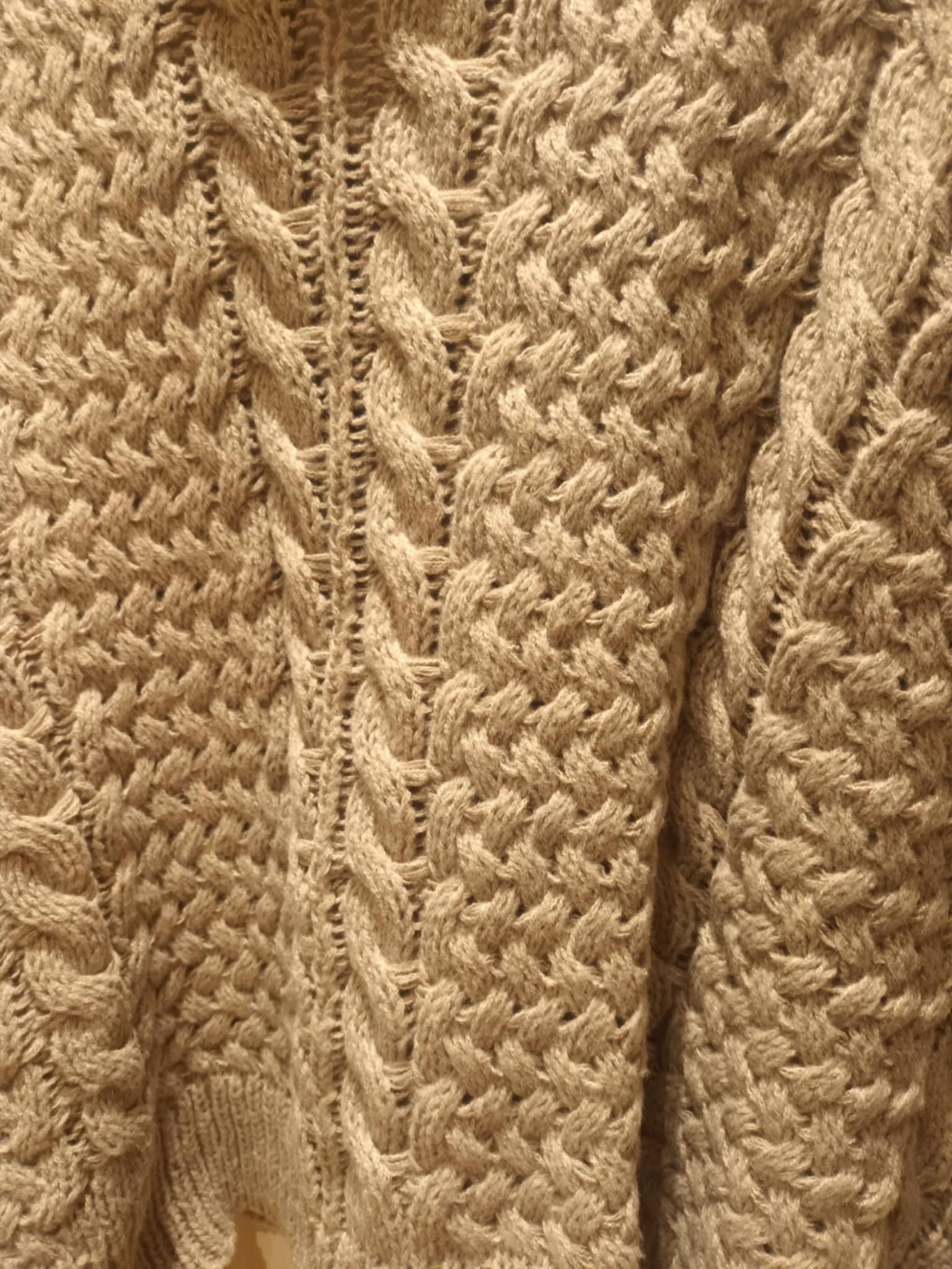 We're delighted to bring you an elevated and glamorous version of the classic chunky cable knit! Coming in classic oatmeal and with a cosy funnel neckline, this divine chunky knit features tapered sleeves to give a super flattering fit and stylish split detail to the hemline.