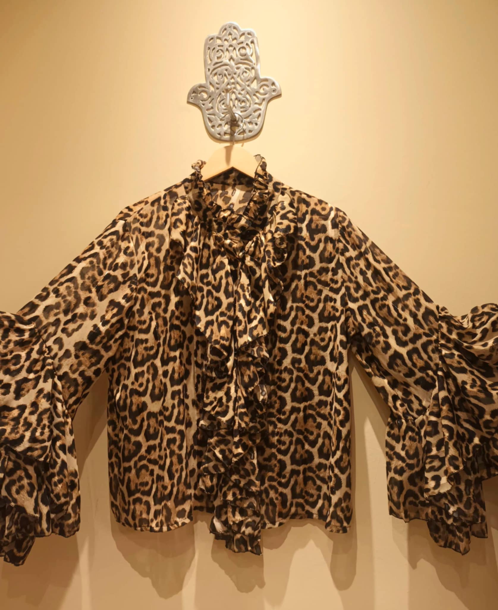THE 'LABELLE' FABULOUSLY FLOUNCY ROCK CHICK STYLE LEOPARD WATERFALL FRILL BLOUSE
