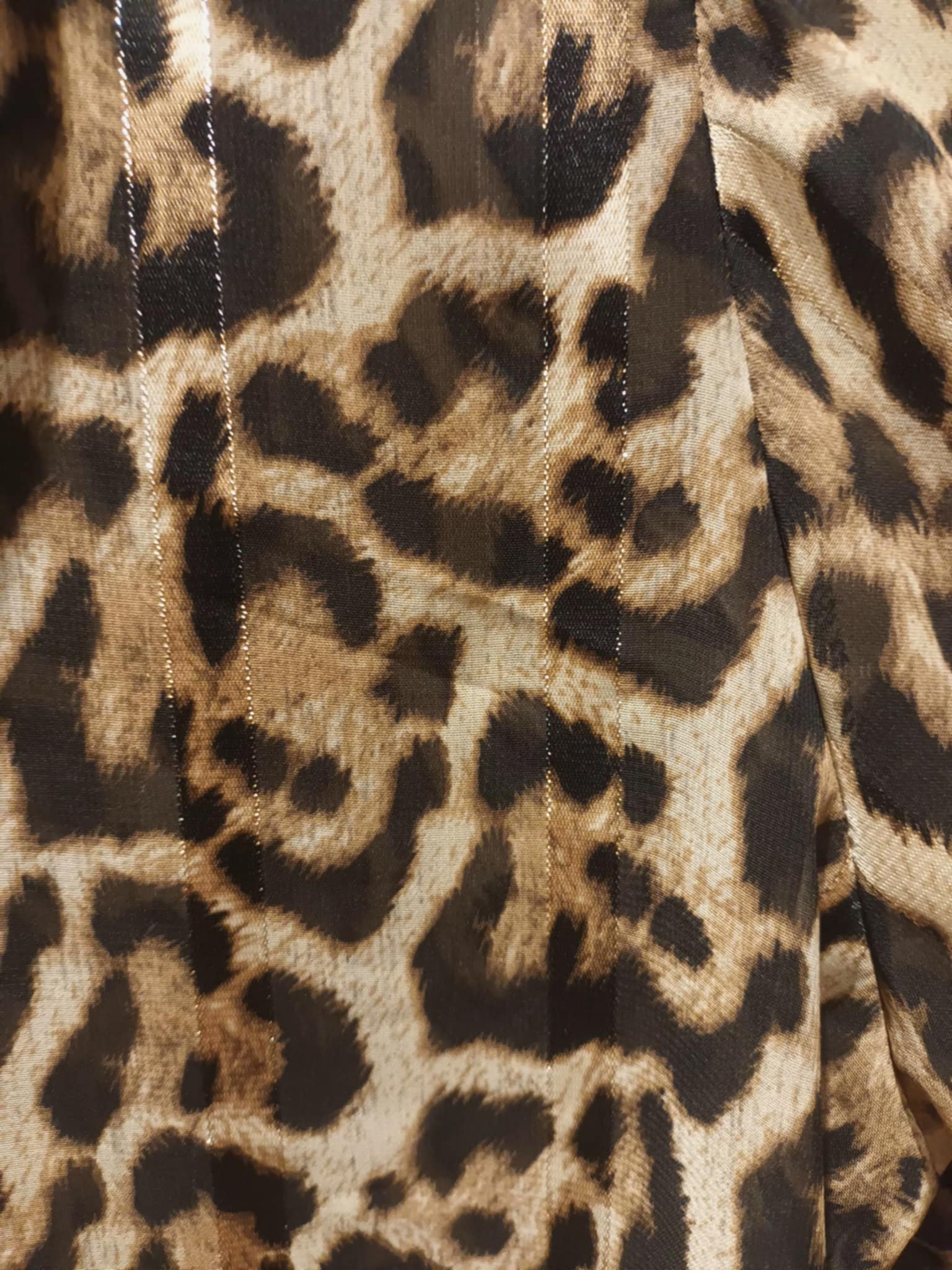 We think we've found the perfect 'wear with anything' blouse! Coming in a floaty leopard print chiffon and with accents of gold pinstripe, this fabulous blouse has a button through fastening and flouncy waterfall frills. With dramatic bell sleeves, this stunning blouse looks stunning teamed with leather leggings or our HALLE jeans.