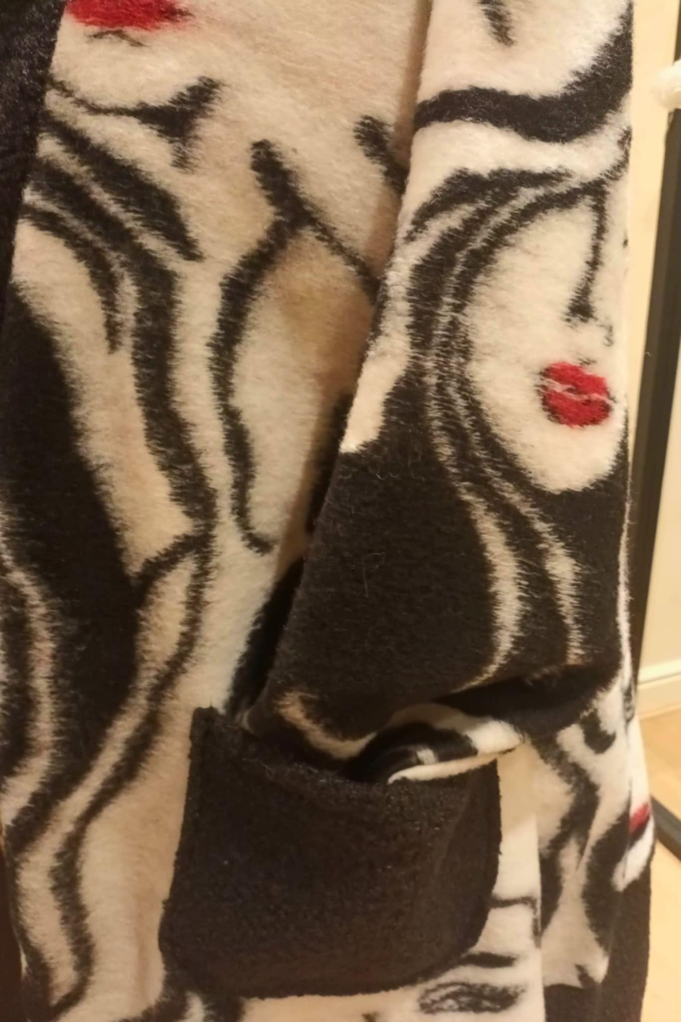 Coming in a flattering oversized 'edge to edge' style, this glorious coat drapes beautifully and features a bang on trend cocoon style hemline and a stunning 'impressionist ladies' print. With oversized pockets and a cosy shawl style collar. Dress this elegant coat up or down with a pop of red lipstick to accentuate the beautifully quirky print.