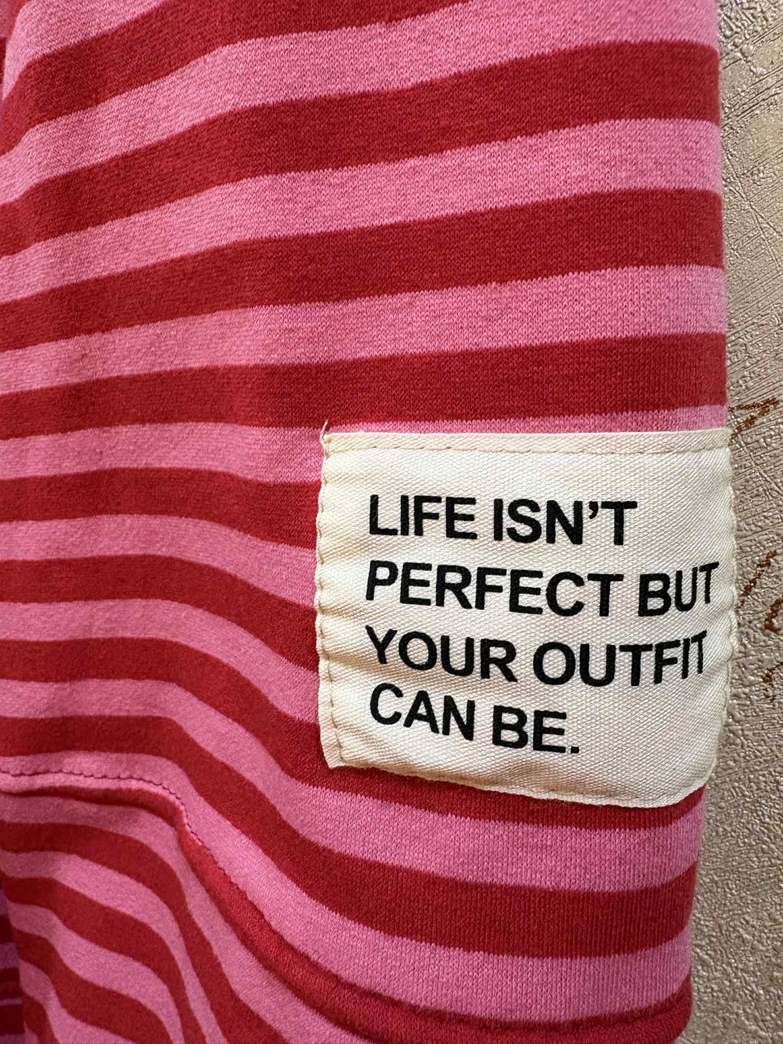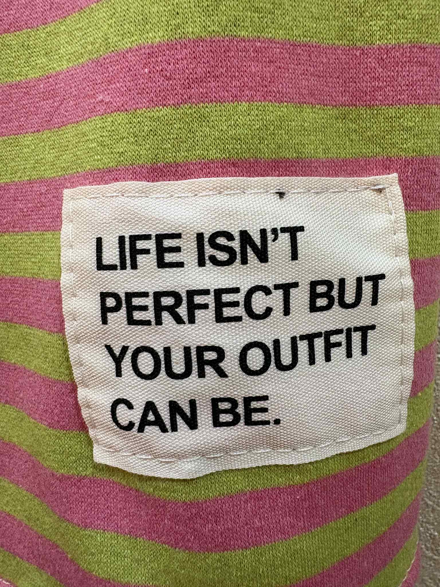 Give your wardrobe a pop of colour with our bright and beautiful WEEKENDER sweatshirt. Relaxed fit style, this round necked sweatshirt comes in colour pop stripes and features a sassy patch detail to the arm 'LIFE ISN'T PERFECT BUT YOUR OUTFIT CAN BE'